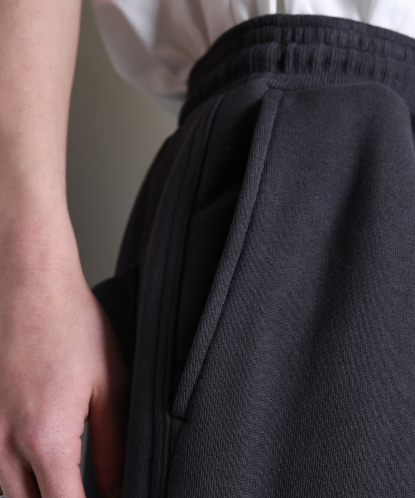 スウェットパンツでありながら、どこかモードな雰囲気も感じさせます。