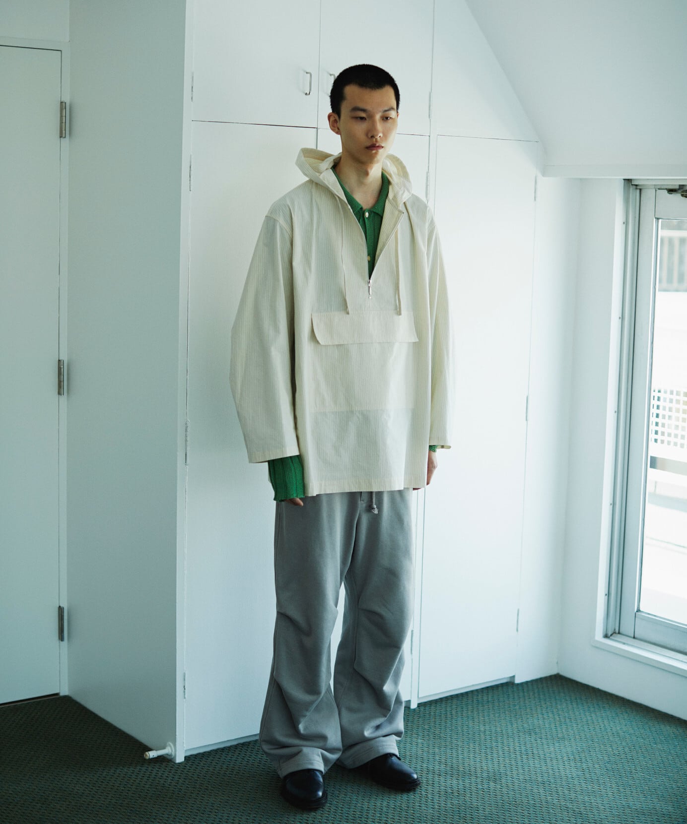カジュアルアイテムでありながら、どこか整ったムードが漂います。