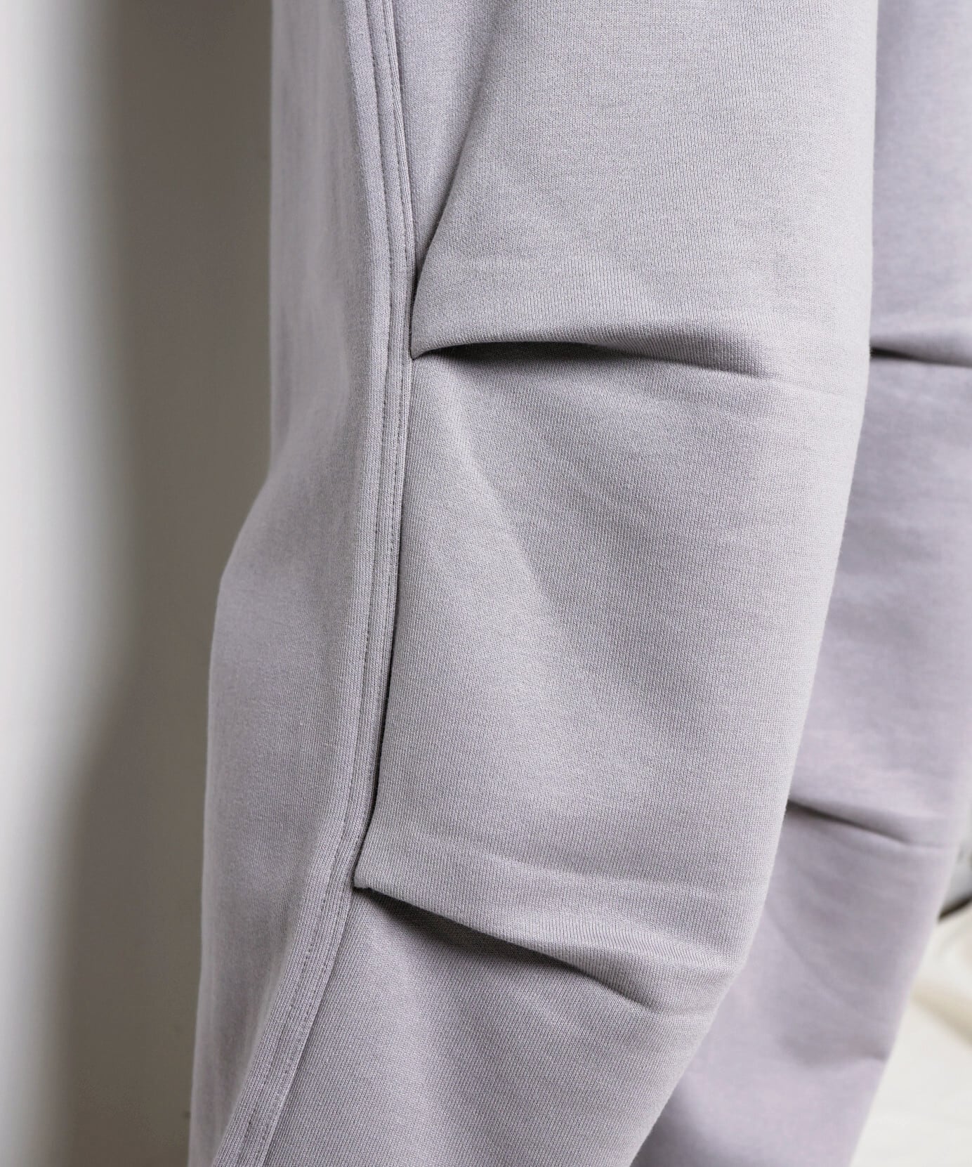 スウェットパンツでありながら、どこかモードな雰囲気も感じさせます。