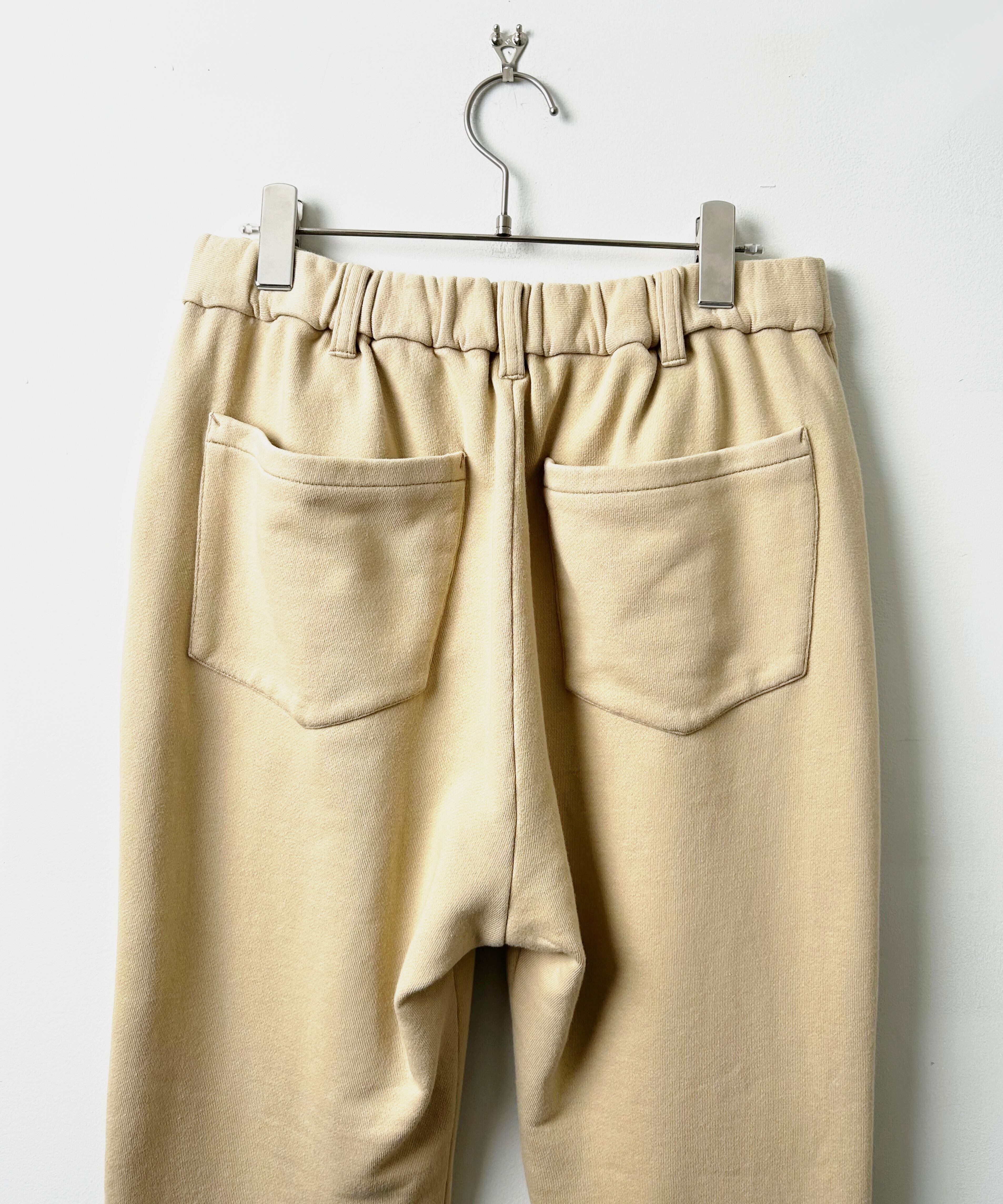 カラーも独特で、ベージュはサンドベージュのような、しっかりと表情のある色味です。生地感も相まって、スウェットパンツの中では比較的長いシーズン着用できると思います。