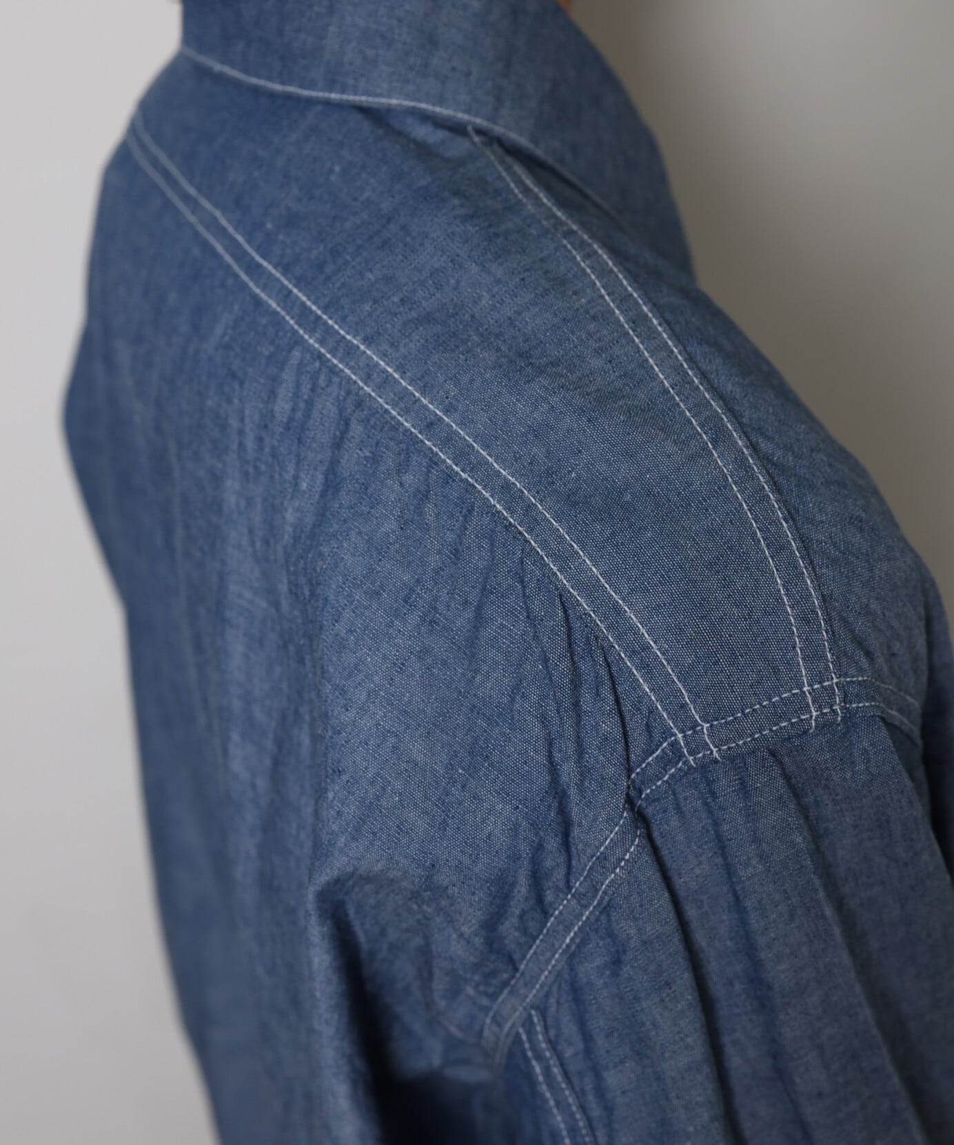 着込んでいくことで経年変化も期待できるカラーなので、自分だけの色落ちを育てたい方にもおすすめ。冬から春はインナー使い、夏は一枚でさらっと。洗いざらしでも品よくまとまるシャンブレーシャツです。