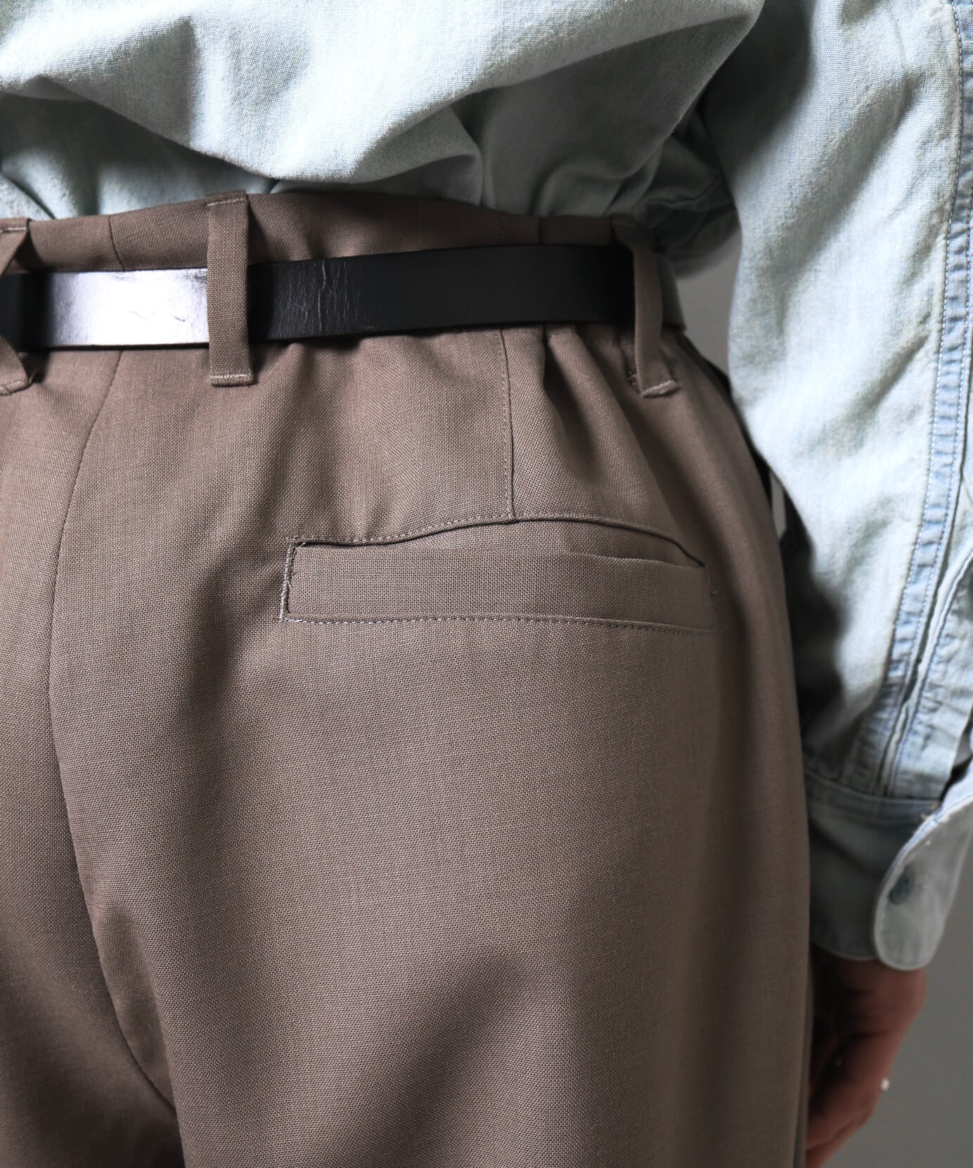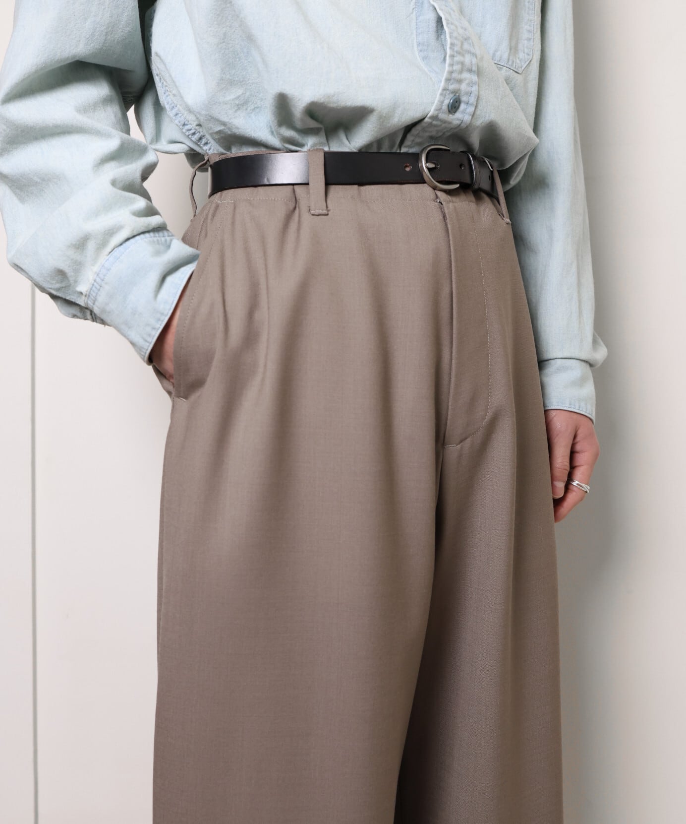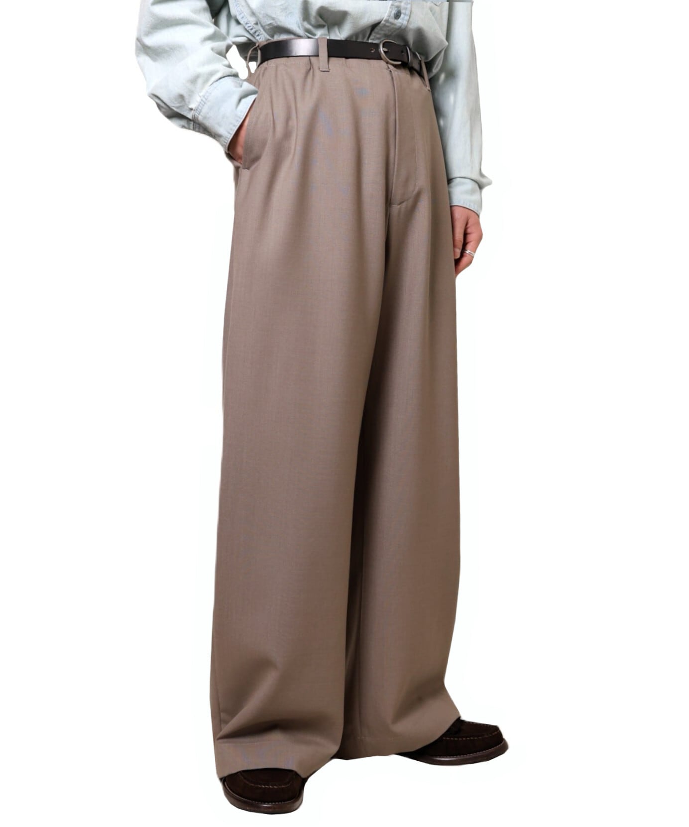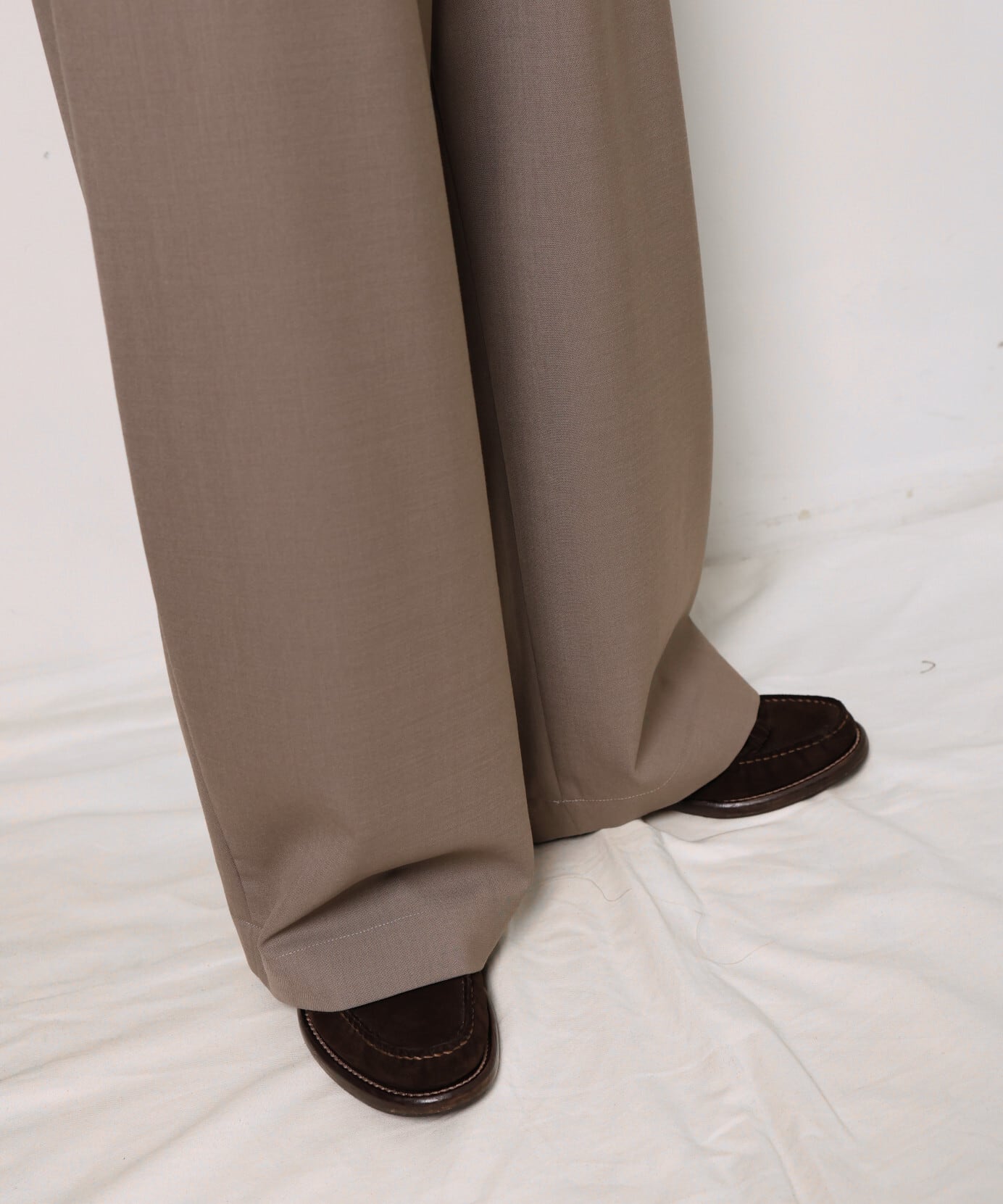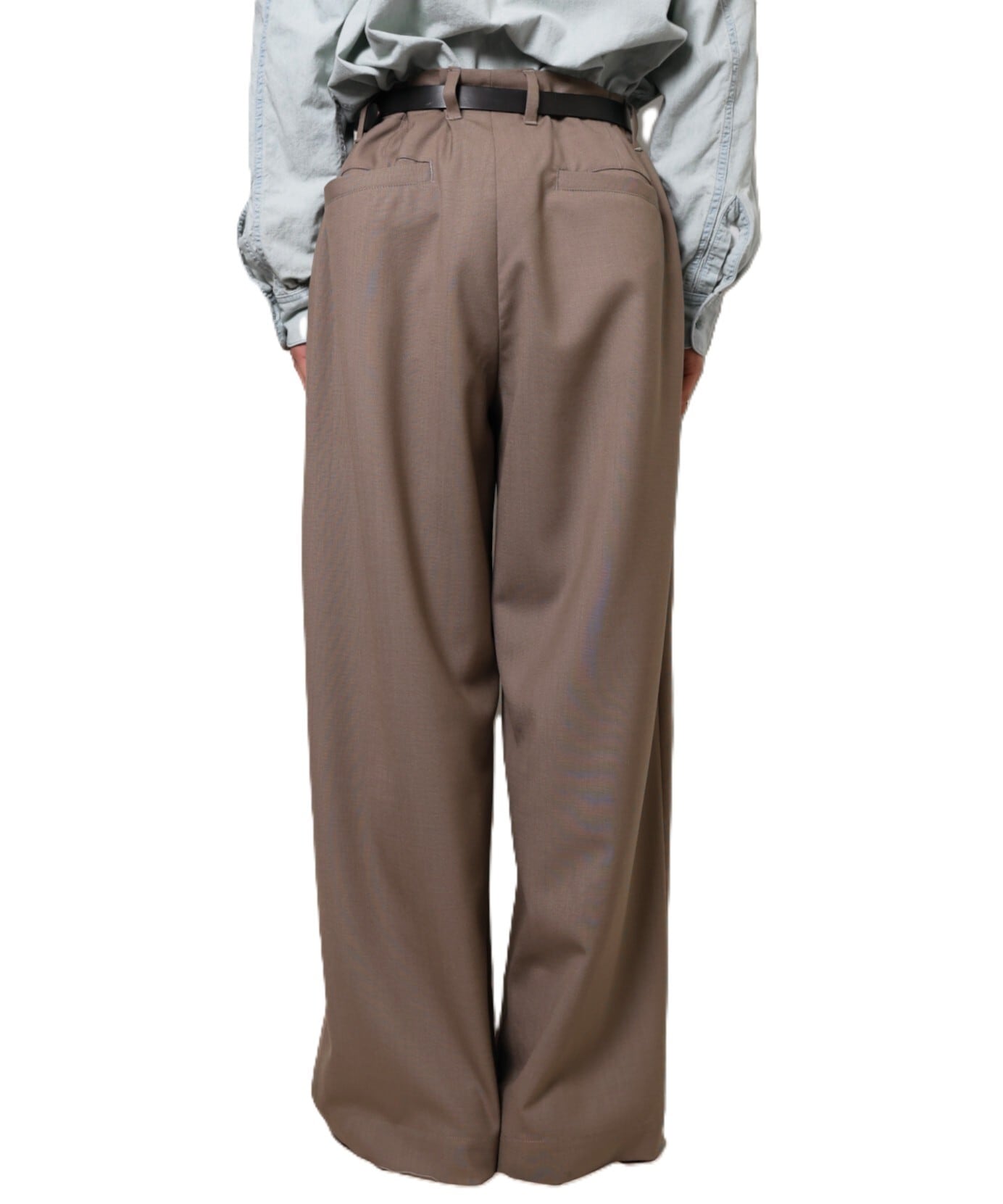 ノータックのワイドストレート。ウエストにも程よくゆとりがあり、幅広い方に着用いただけるバランスです。