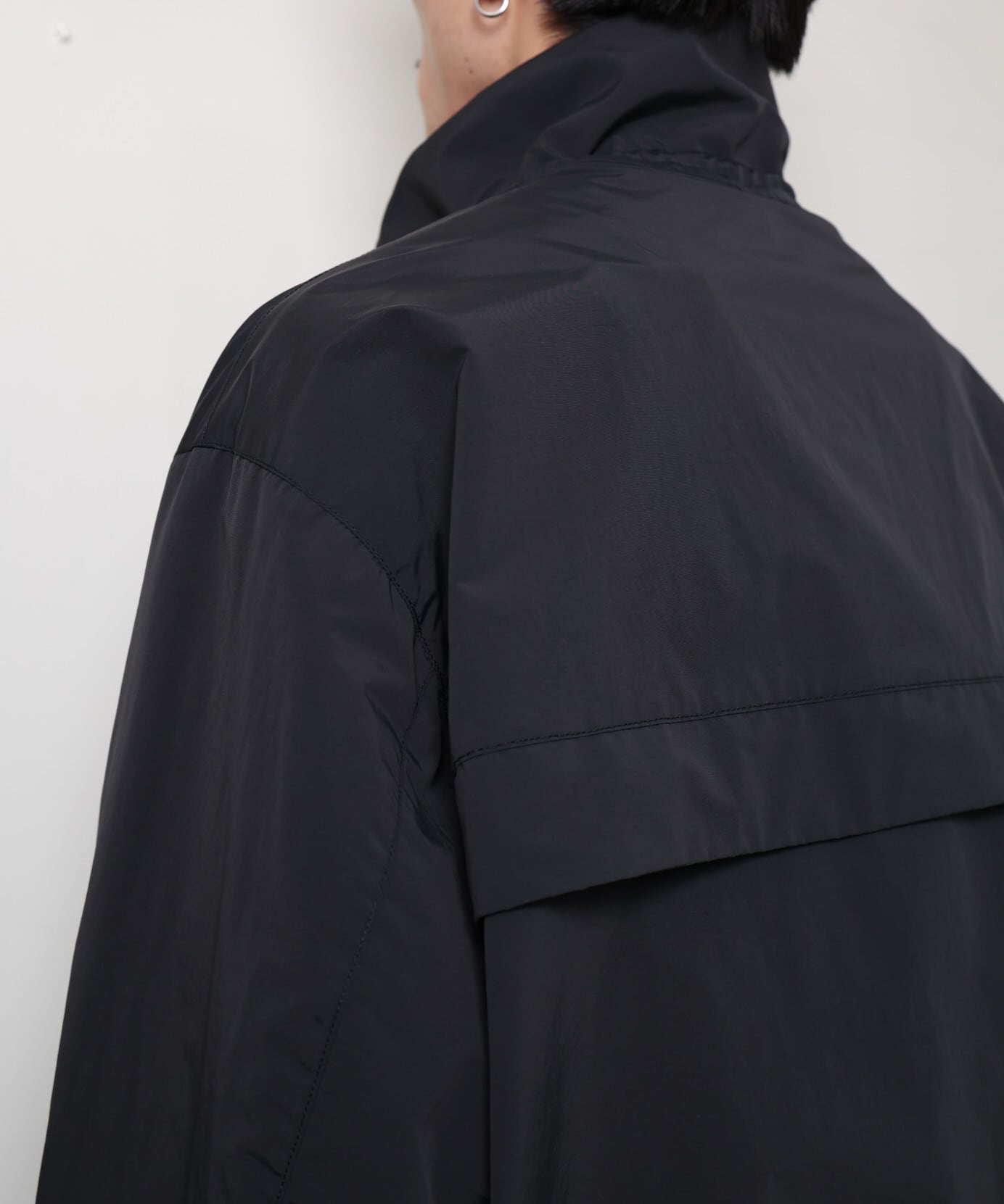 プルオーバー型のミニマルな構造に、ナイロンタフタの表情がしっかりと映えるデザイン。