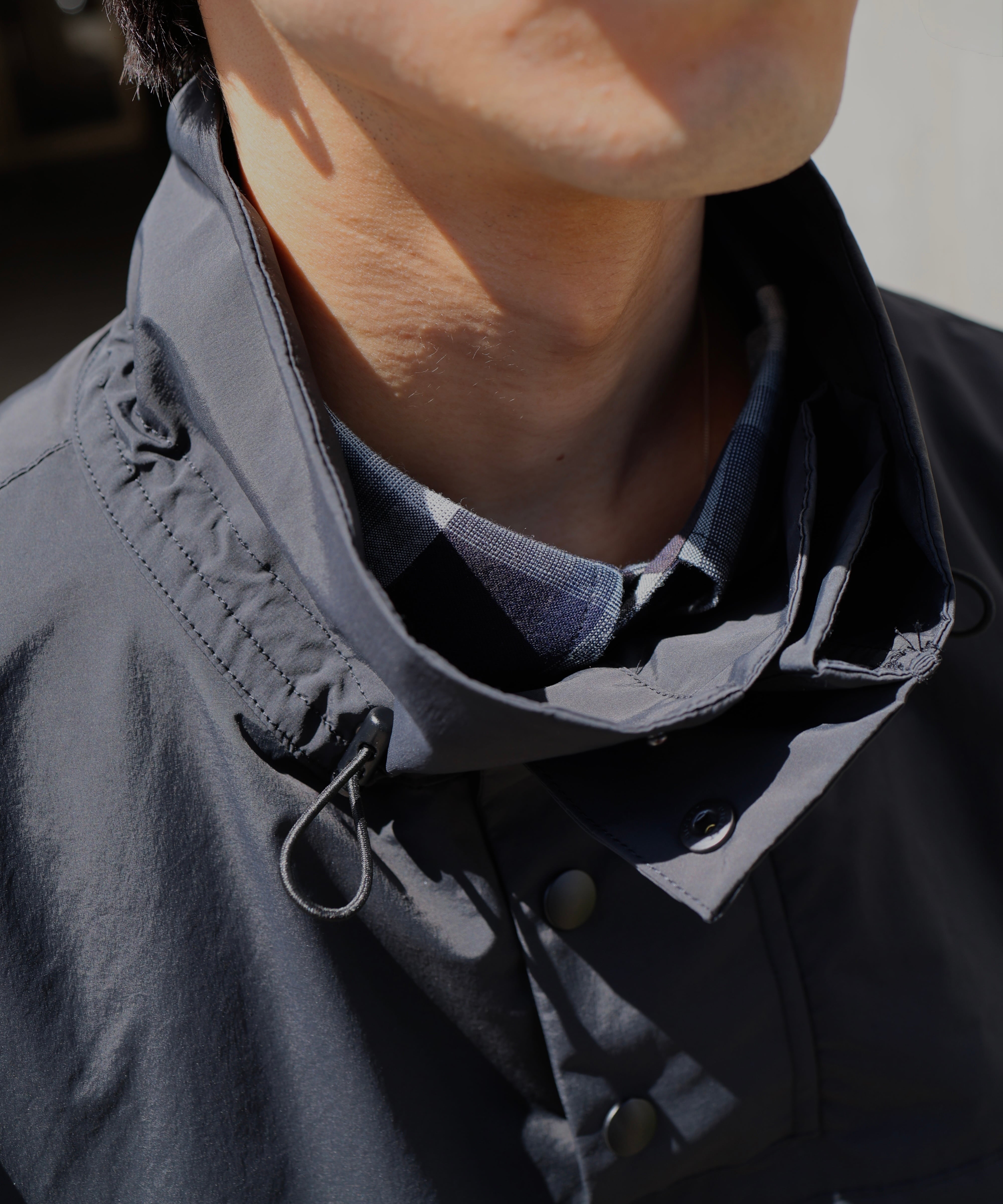 フードなしのアノラック。ありそうで意外とないんですよね。フードが付いていた方が便利だし、フルジップの方が着脱もしやすい。それでも惹かれてしまうのが、このフードなしのバランス。