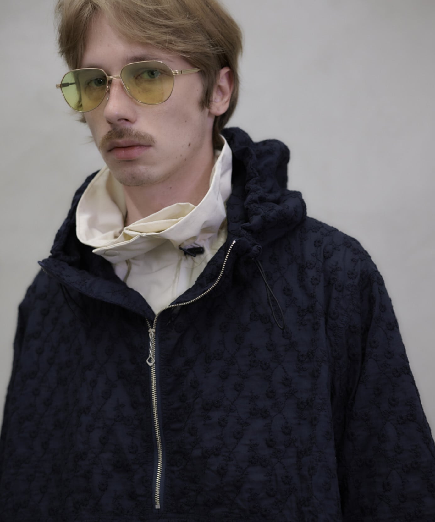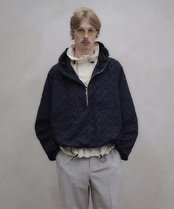 国内で刺繍加工を施した、立体的な表情が魅力のプルオーバージャケット。