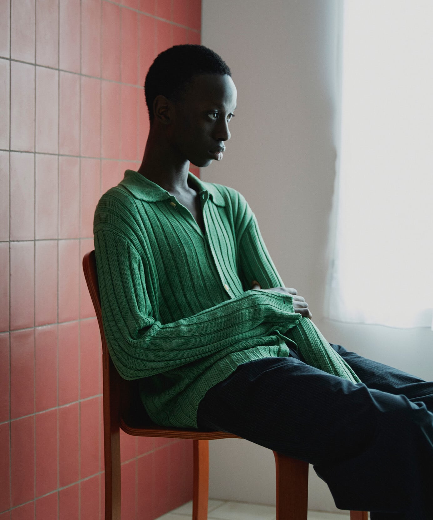 リブの陰影がしっかり出るため、無地でも奥行きのある表情になります。