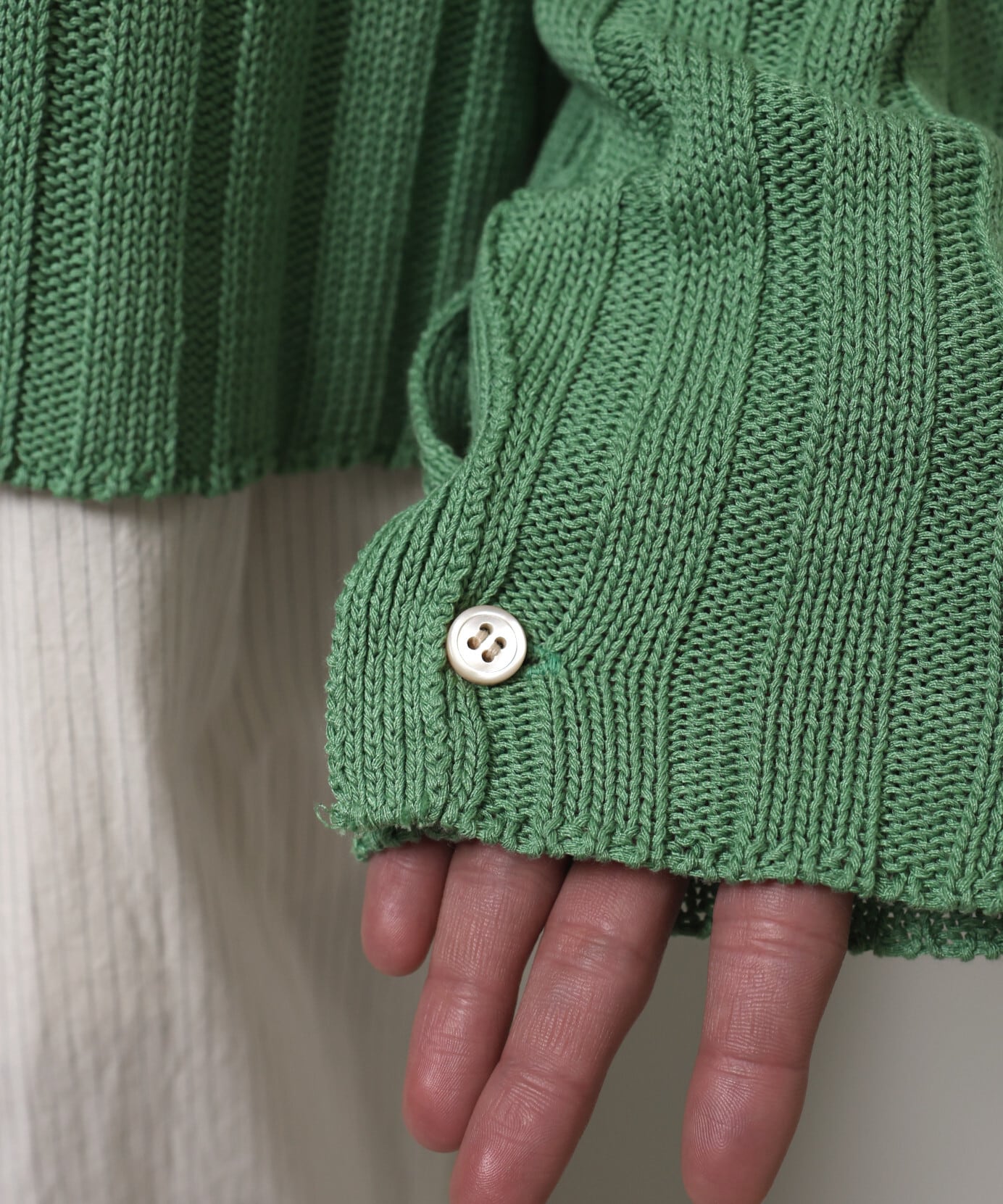 - リブの立体感とボタンの光沢が好バランス