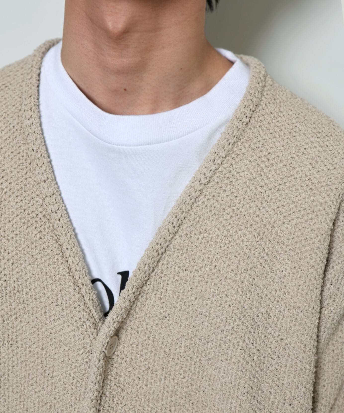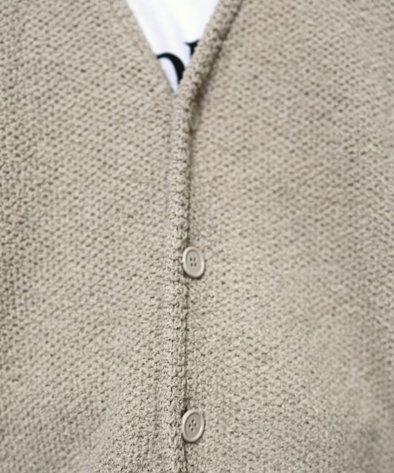 特殊撚糸を使用した綿ループ糸を、職人の手で丁寧に編み上げたハニカムニットカーディガン。