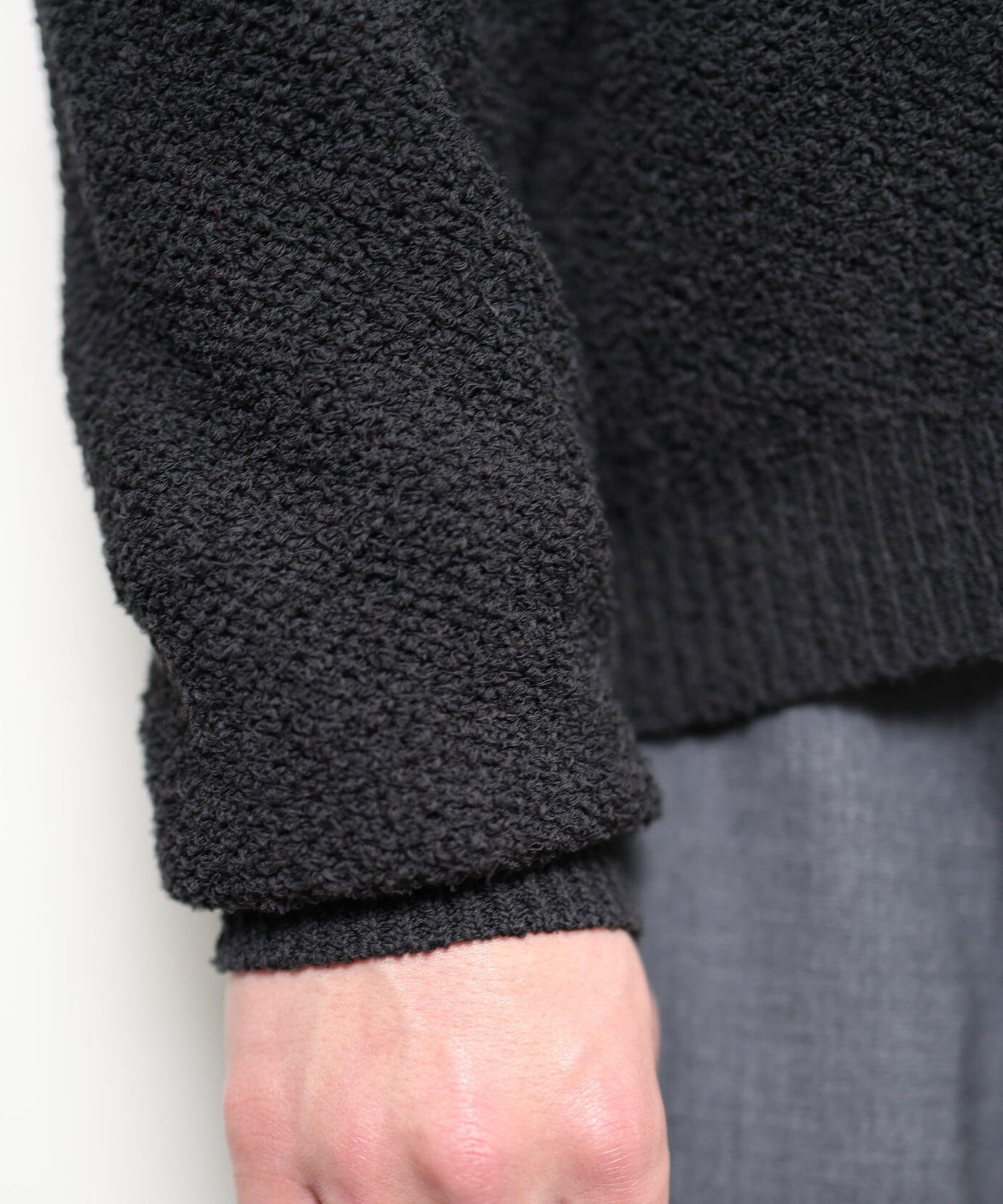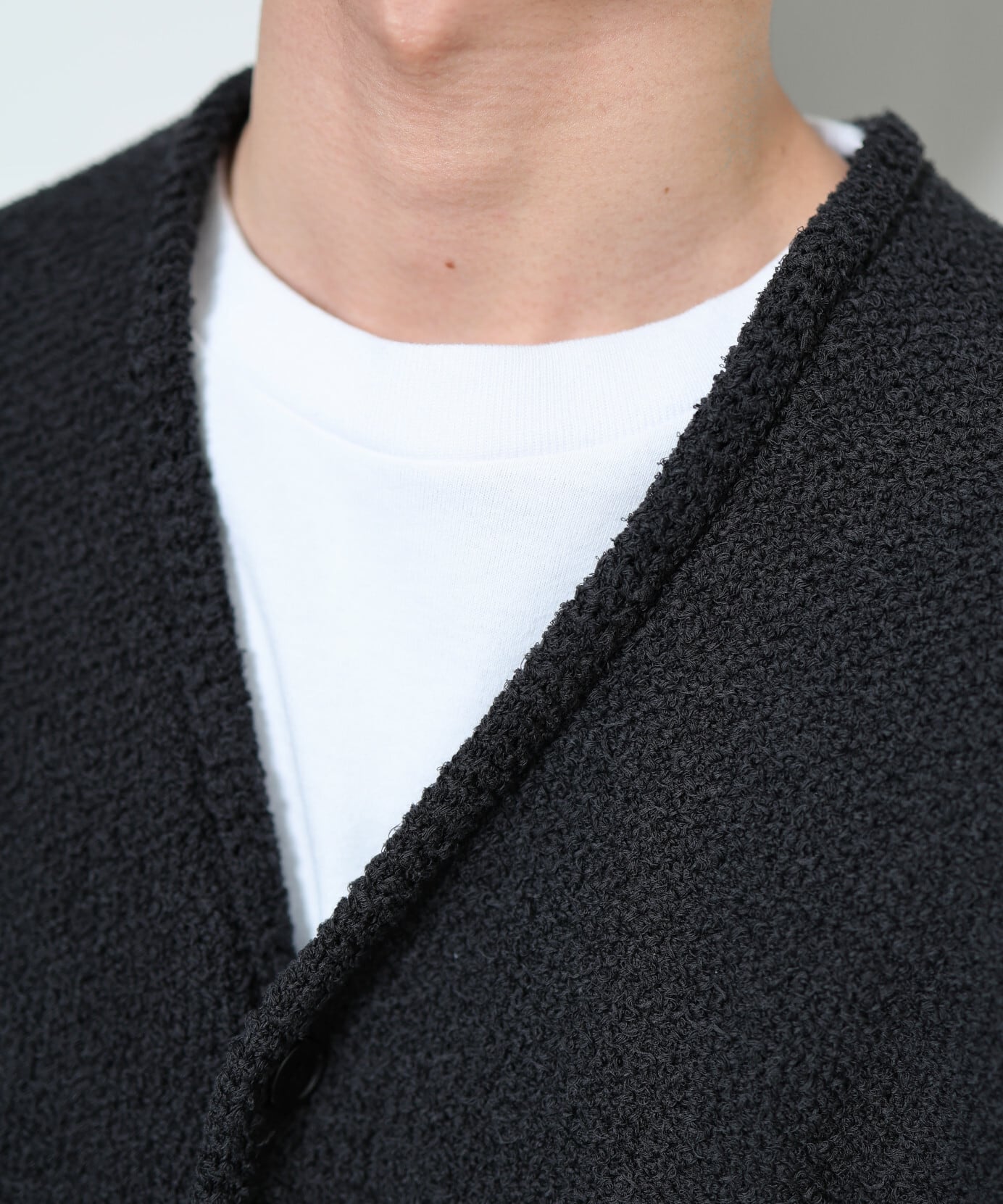 特殊撚糸を使用した綿ループ糸を、職人の手で丁寧に編み上げたハニカムニットカーディガン。