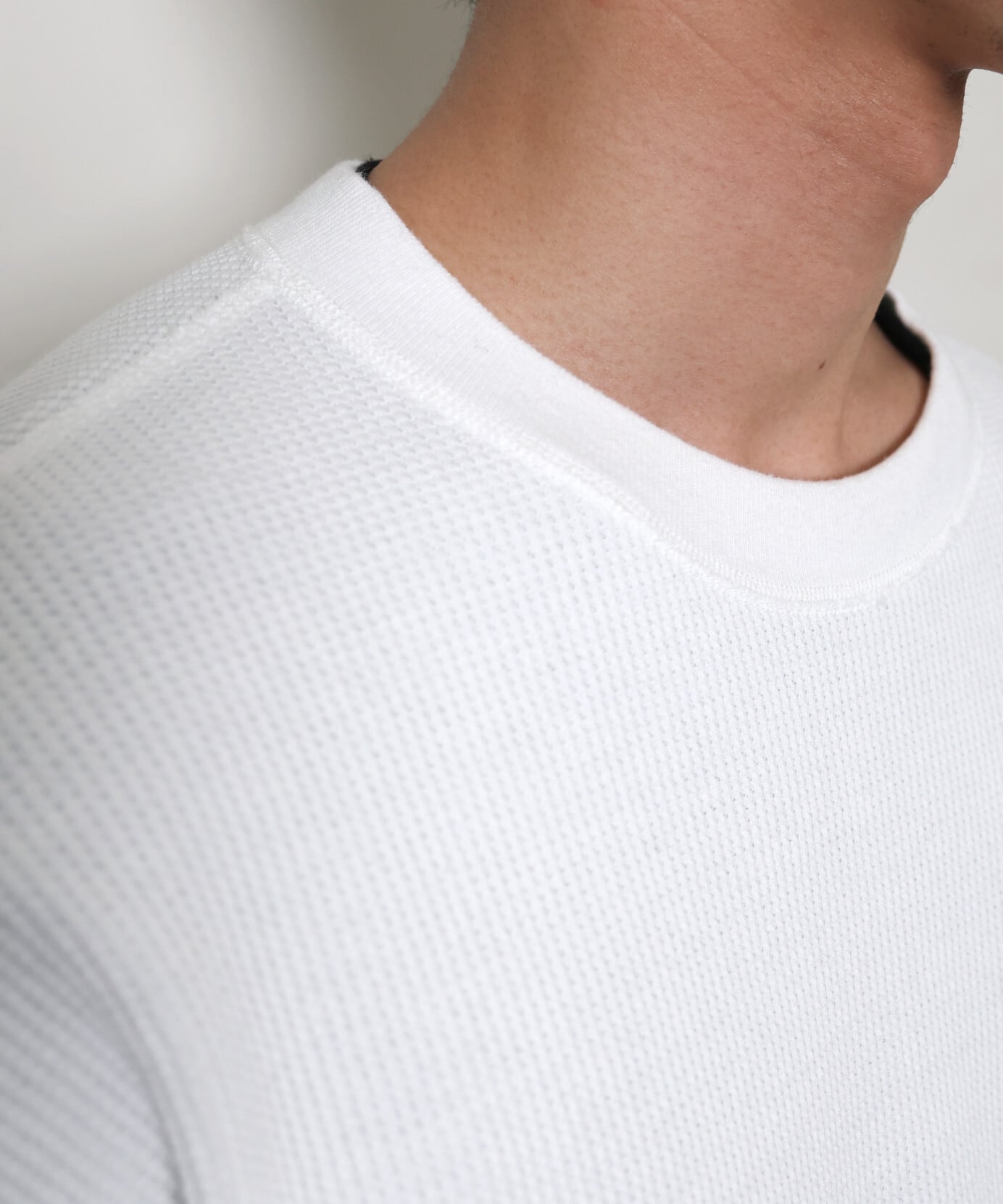 ワッフル編みならではの柔らかな伸縮性があり、身体に張り付きすぎない自然なシルエット。
