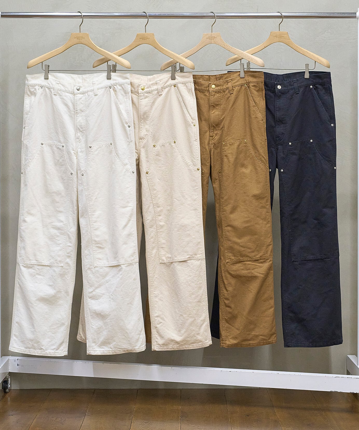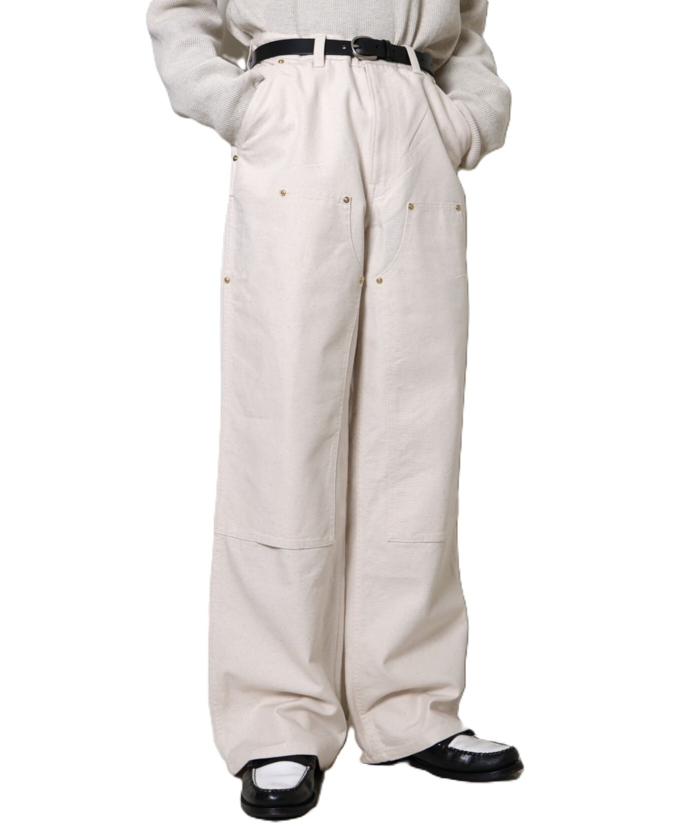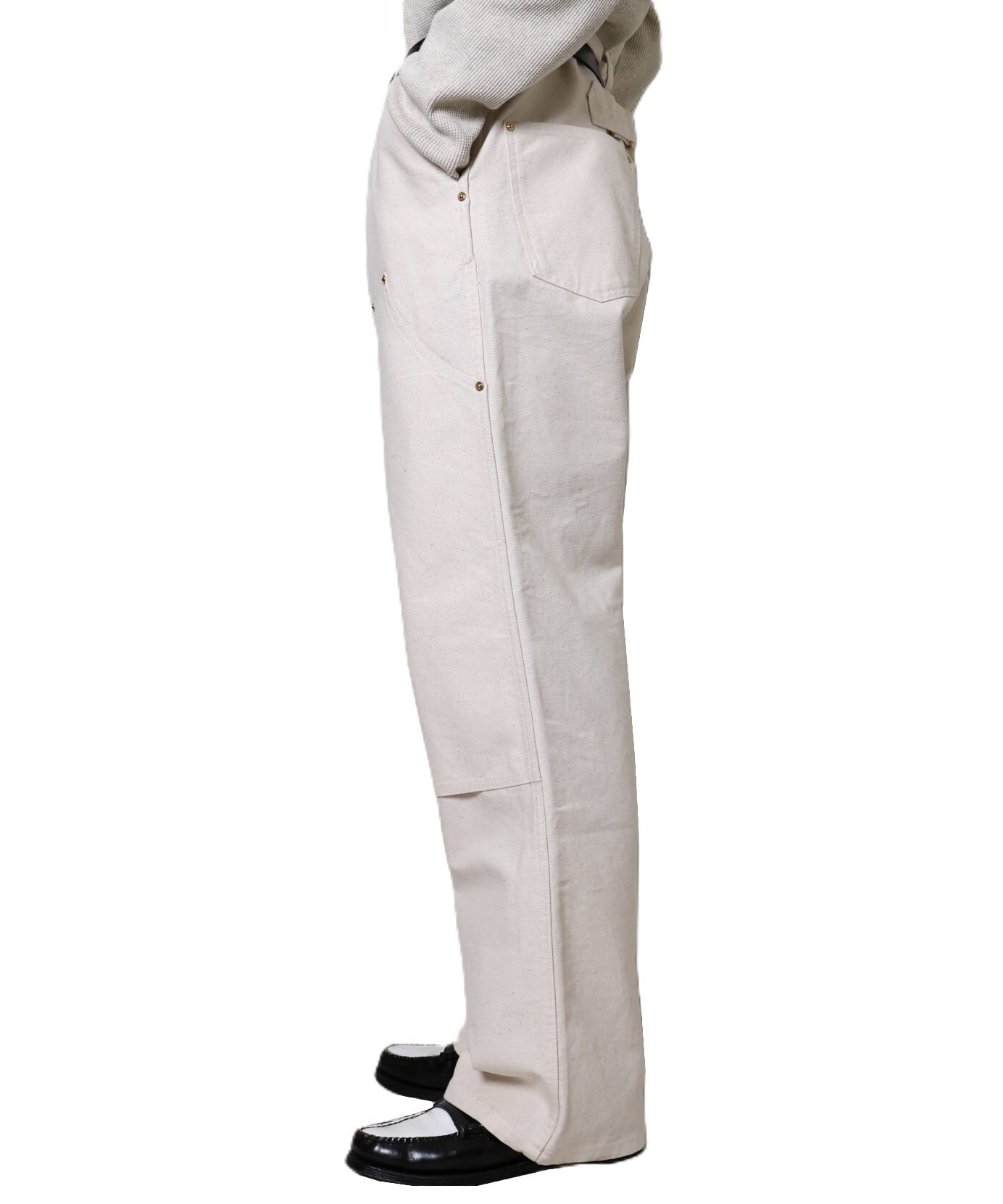 ヴィンテージのダック生地をリプロダクトし、現代的な空気感で仕上げたダブルニーパンツ。