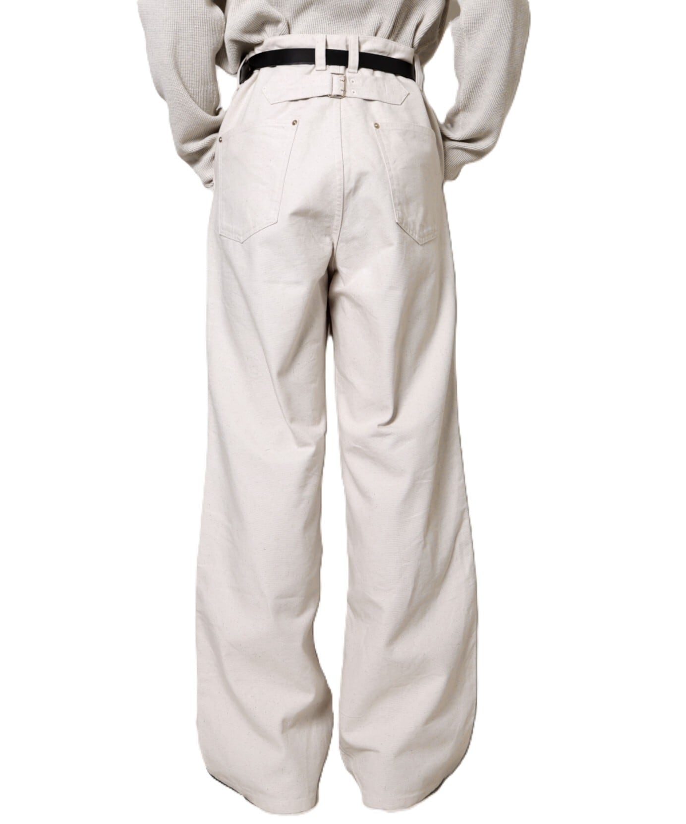 ワークパンツの要素をUNUSEDらしいミニマルな構造に落とし込んだデザイン。