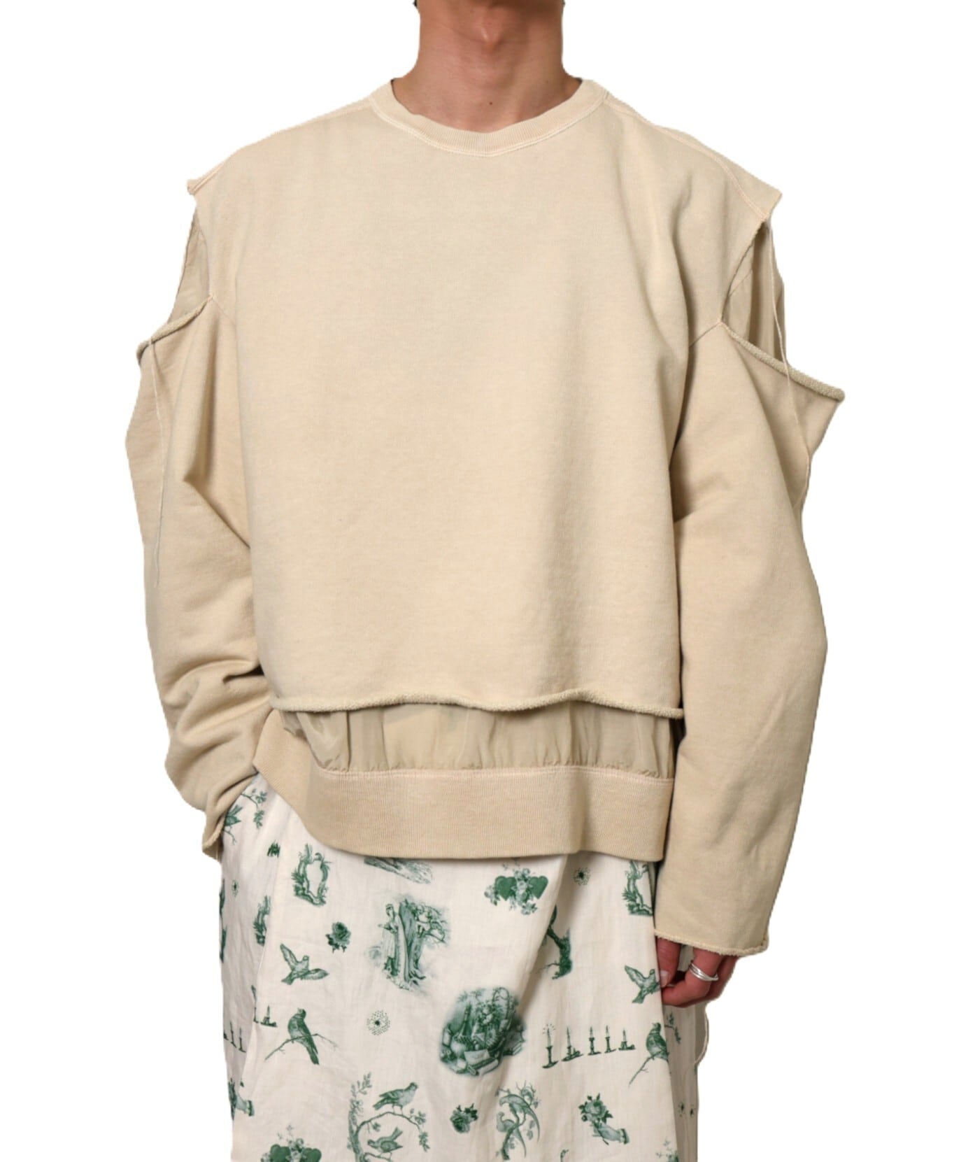 デザイン性があるため、一枚でスタイルが成立するスウェット。