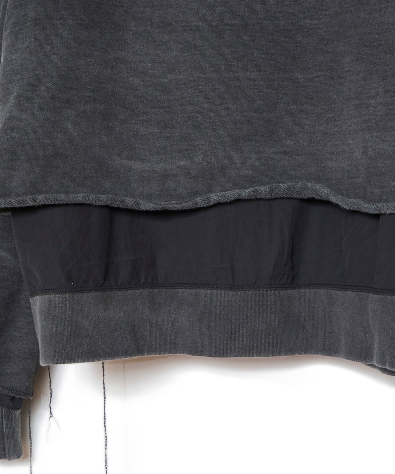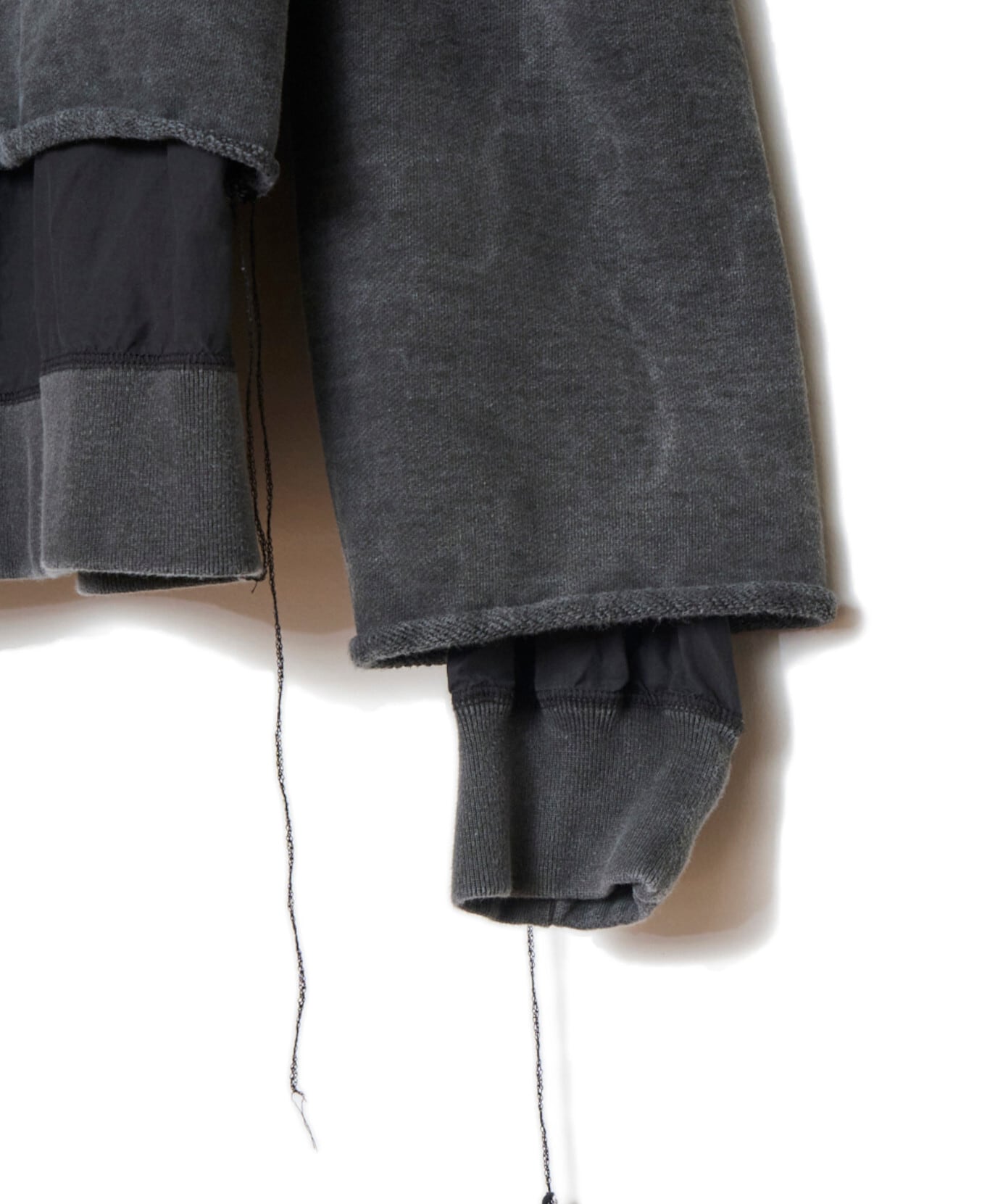 緑川氏のアーティザナルな思考を反映したウェアには、リボンテープや、袖や裾からはみ出る生地といったデコラティブなディテールが施されている。