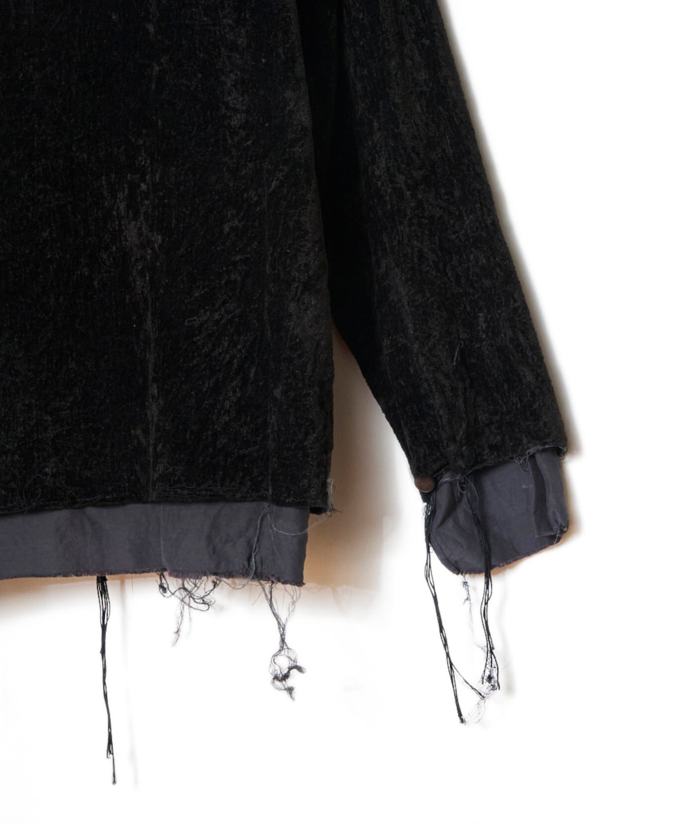 こうした装飾は、紳士服のベースを踏まえた上であしらわれており、今までに感じたことの無い新鮮な表情や、ハンガーに吊るされているだけなのに感じられる独創的な佇まいが魅力です。