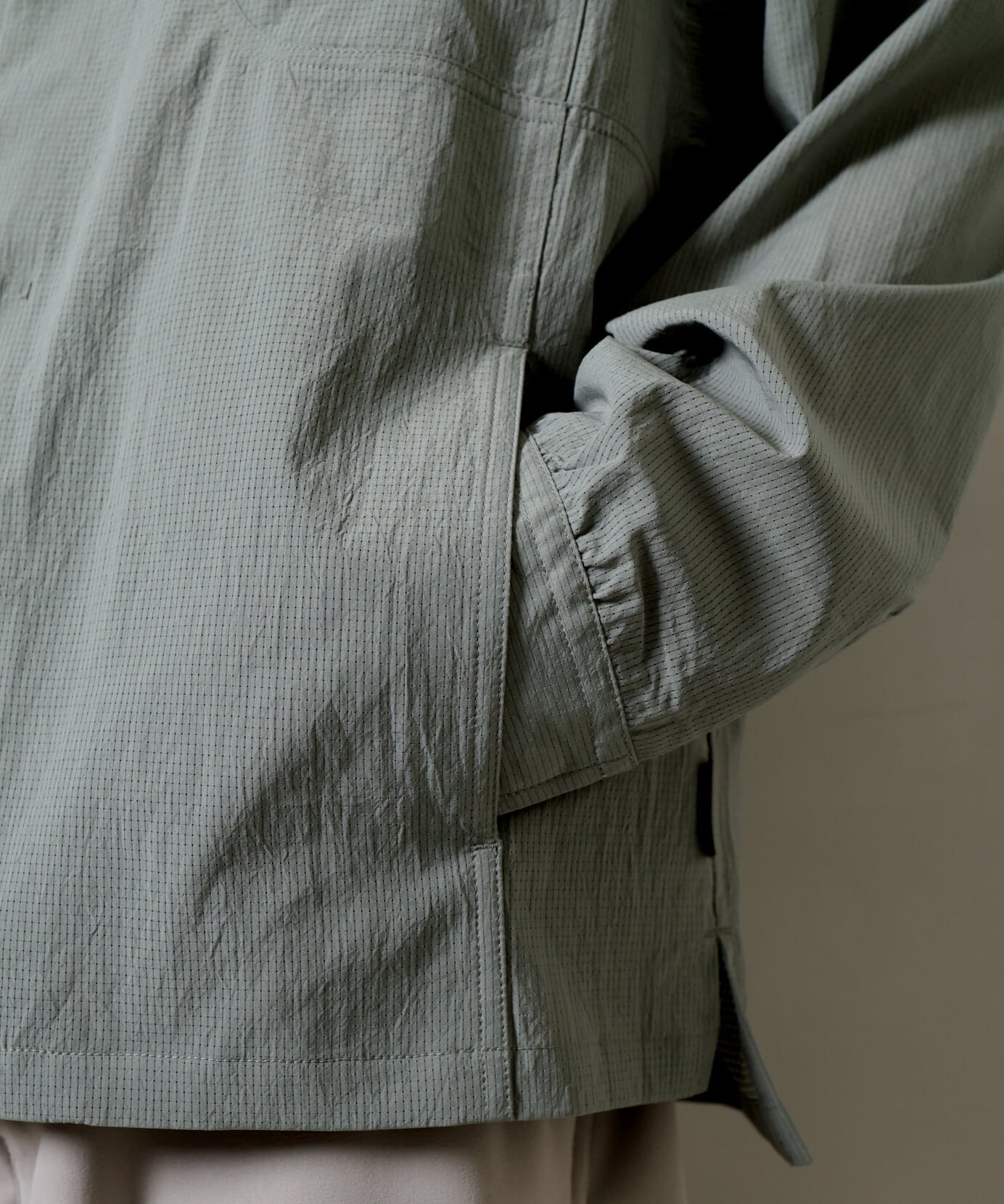 さらにシワ加工を施すことで、リネンライクな表情に仕上げられており、