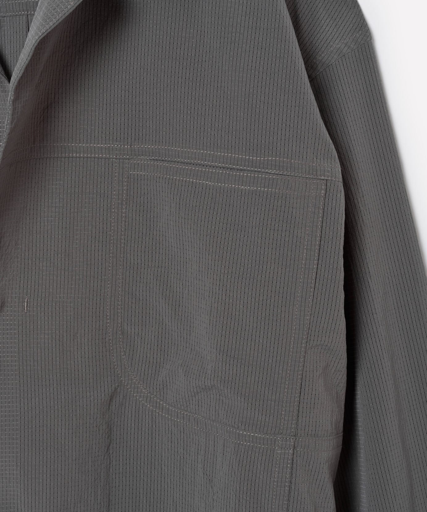 スナップボタンの比翼仕様により、すっきりとした見た目と着脱のしやすさを両立しています。
