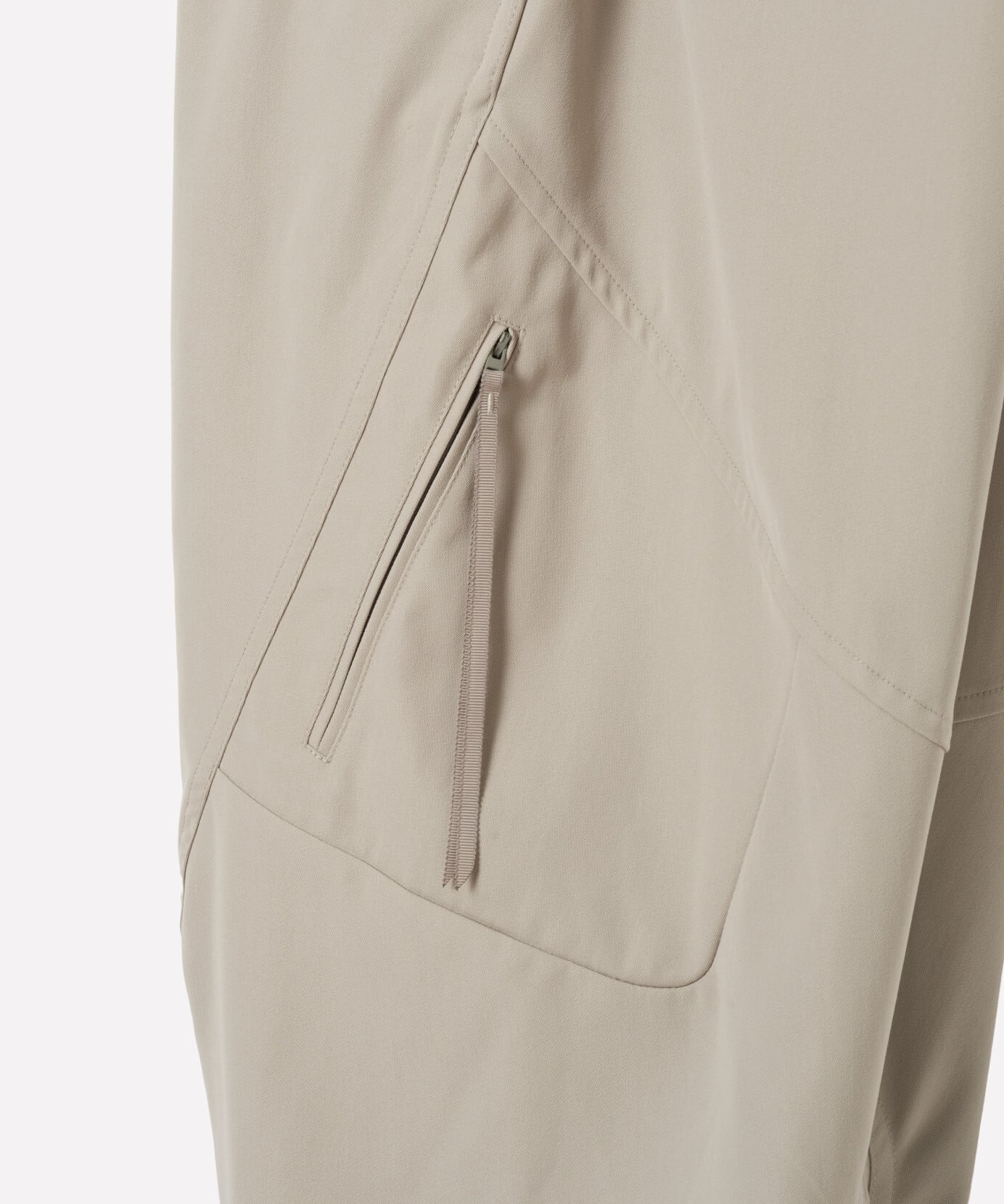 脇のシームにひねりを加え、膝に向かって湾曲した独特のシルエットにより、動きやすさと快適性を追求。
