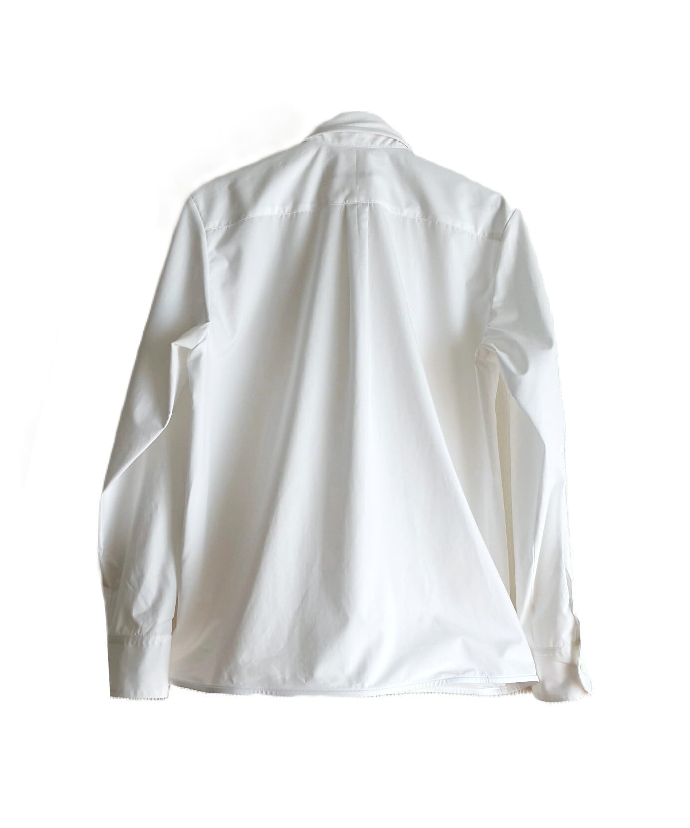 前端、襟や裾に形状記憶のボーンの入ったクラシックなドレスシャツ。