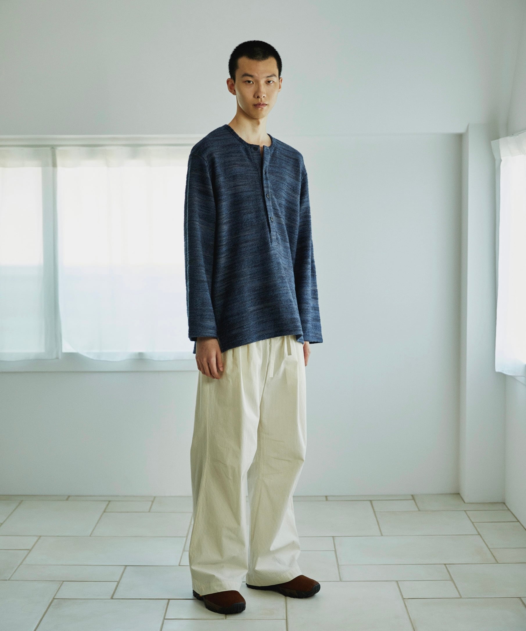 スラックスにもデニムにも馴染む、汎用性の高いシルエット。