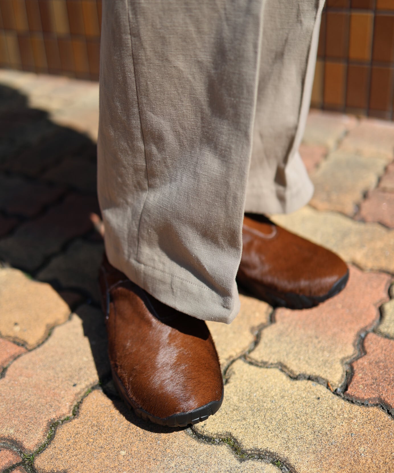素材自体は秋冬らしいハラコですが、あえてショーツなどと合わせてコントラストを楽しむのも良さそう。もちろんビブラムソールなので、秋冬もしっかり活躍してくれます。