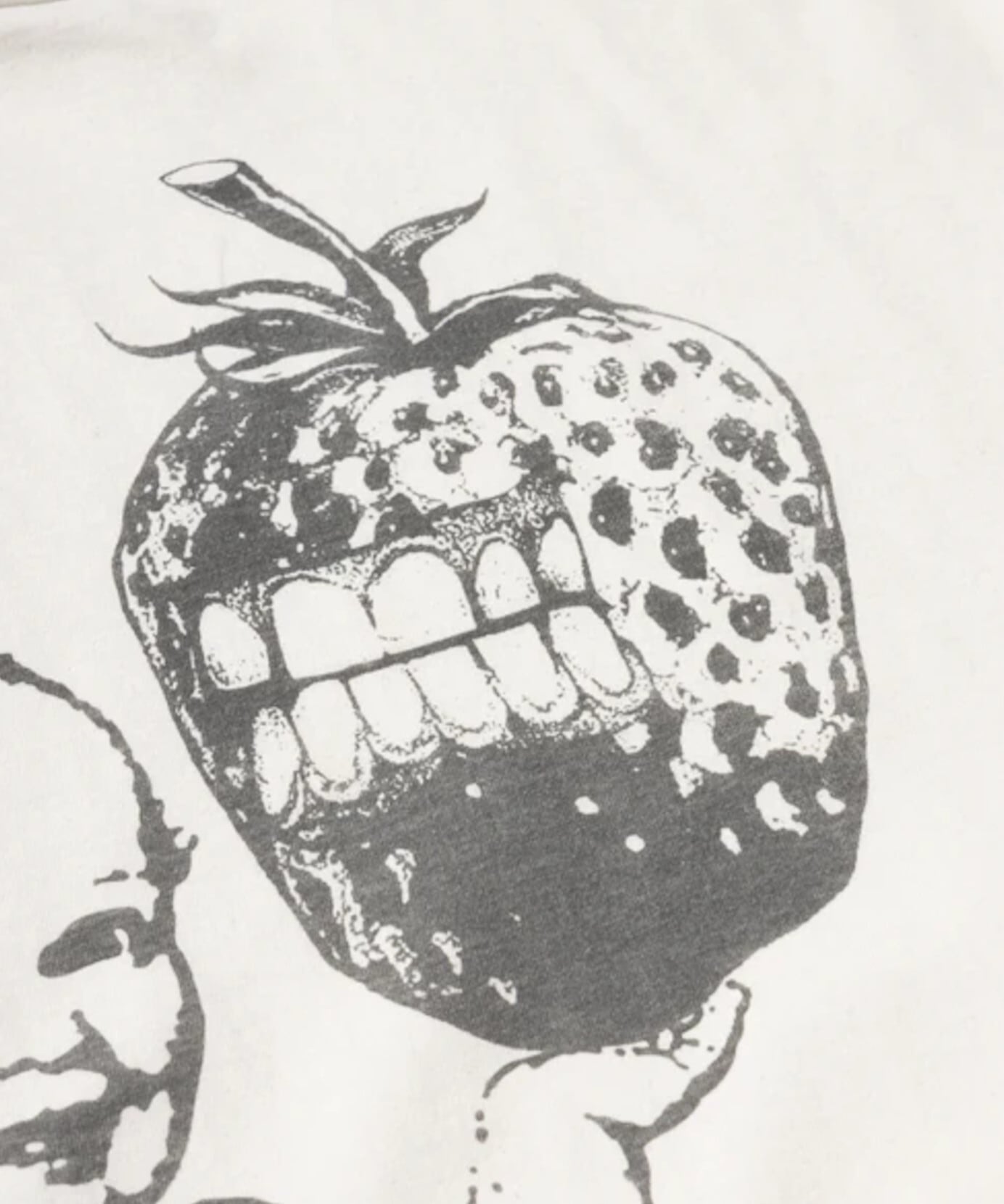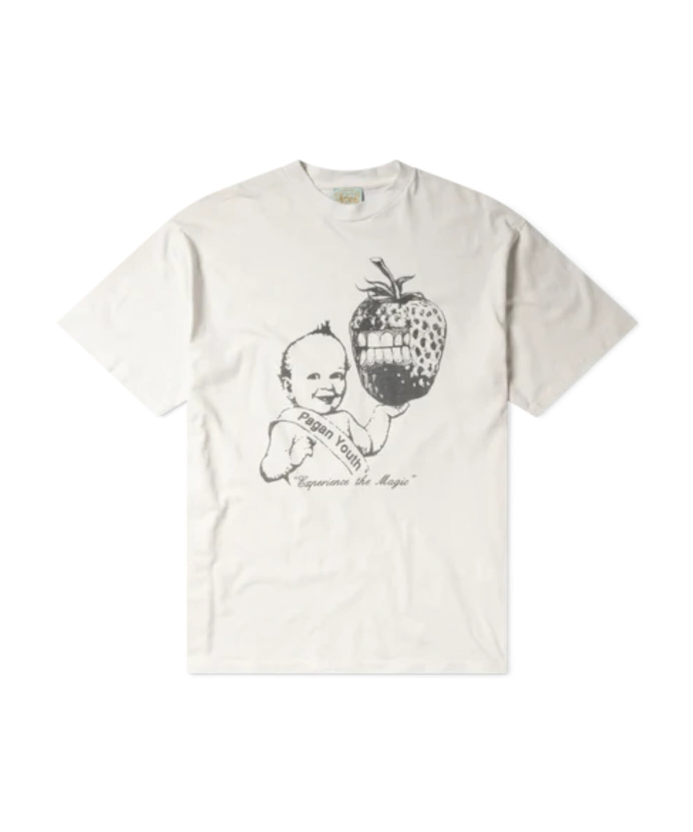 前面には季節限定のStrawbabyグラフィックがプリントされ、ウォッシュ加工で色褪せたような風合いに仕上がっています。