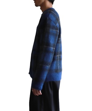 オリジナルのチェック柄が一際目を惹くモヘアカーディガン。