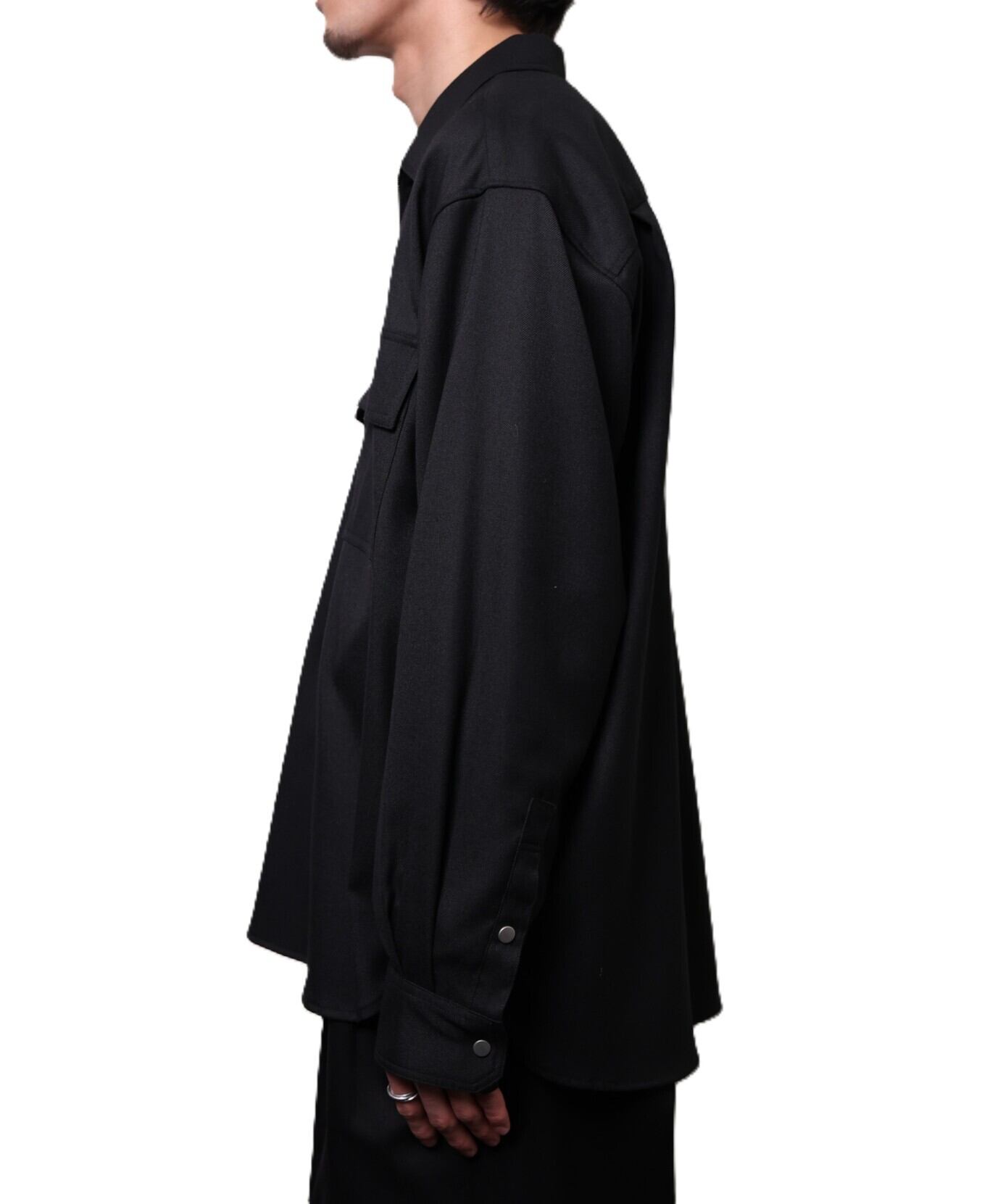 シャツの上品さに、ほんの少しのモード感を添えるディテール。