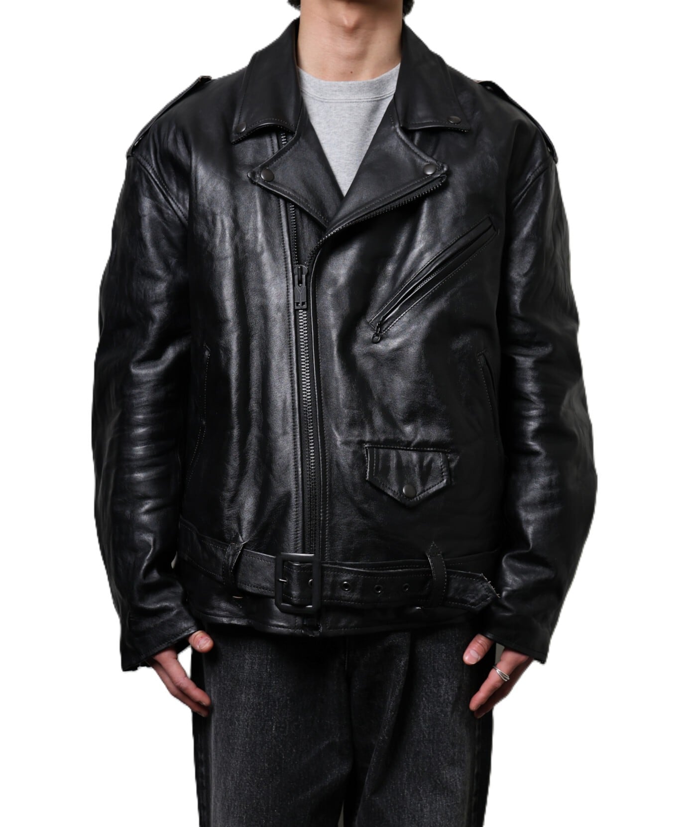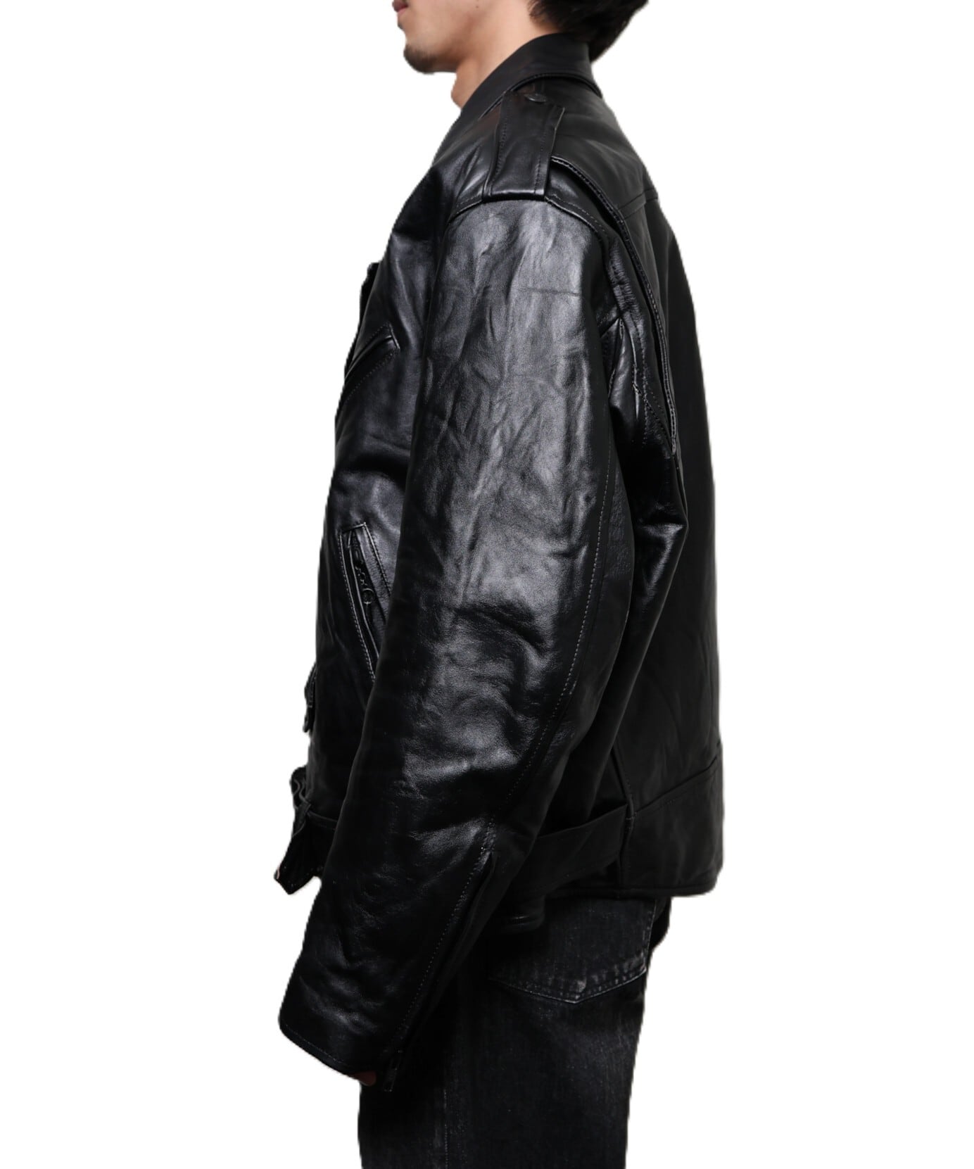 従来のblackmeansのライダースよりも大きめのサイズ感で設計されており、構築的でありながらもリラックスした着心地を実現。
