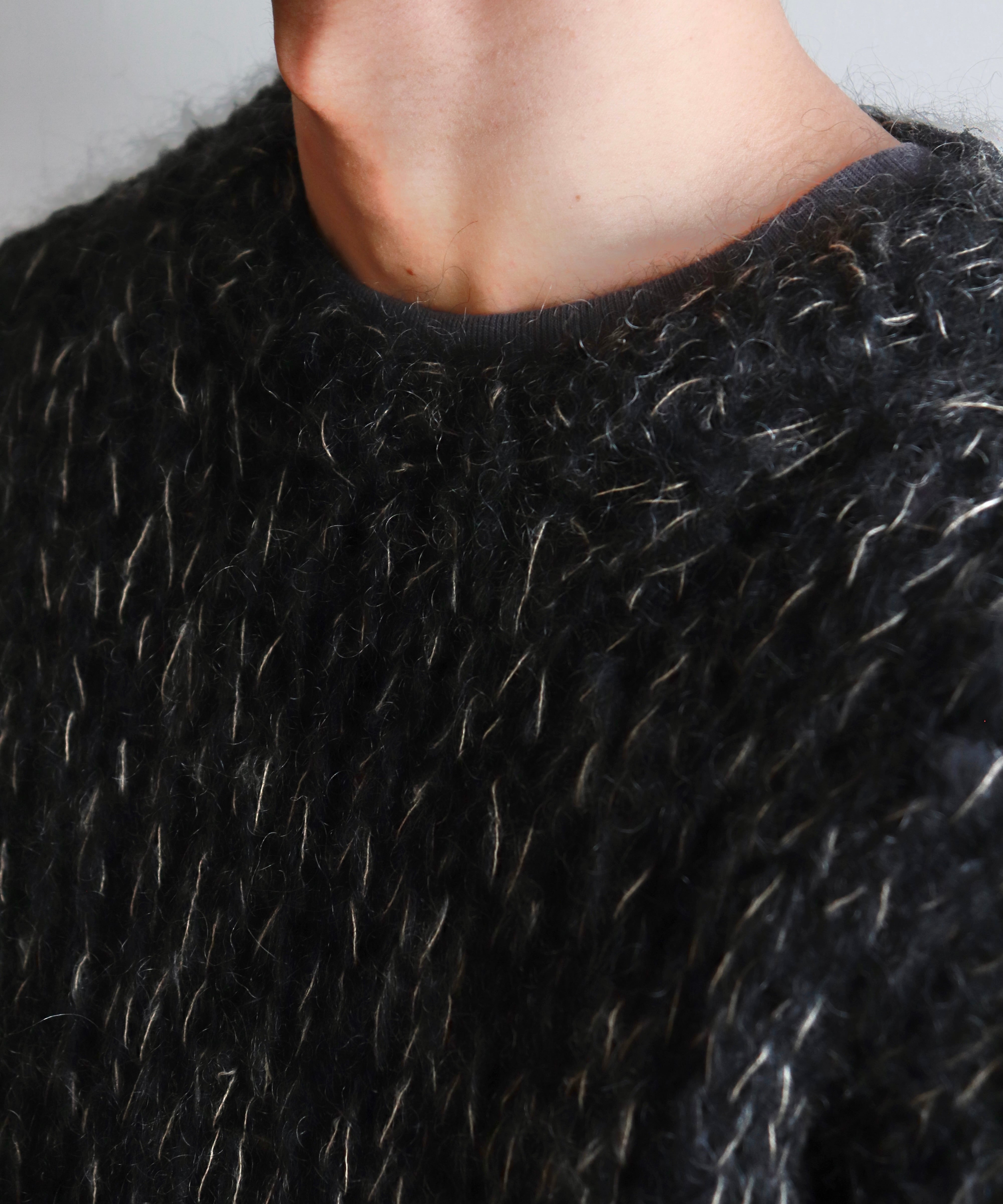 ランダムに細いモヘア糸が編み目に出てきて、毛足がよりプラスされています。